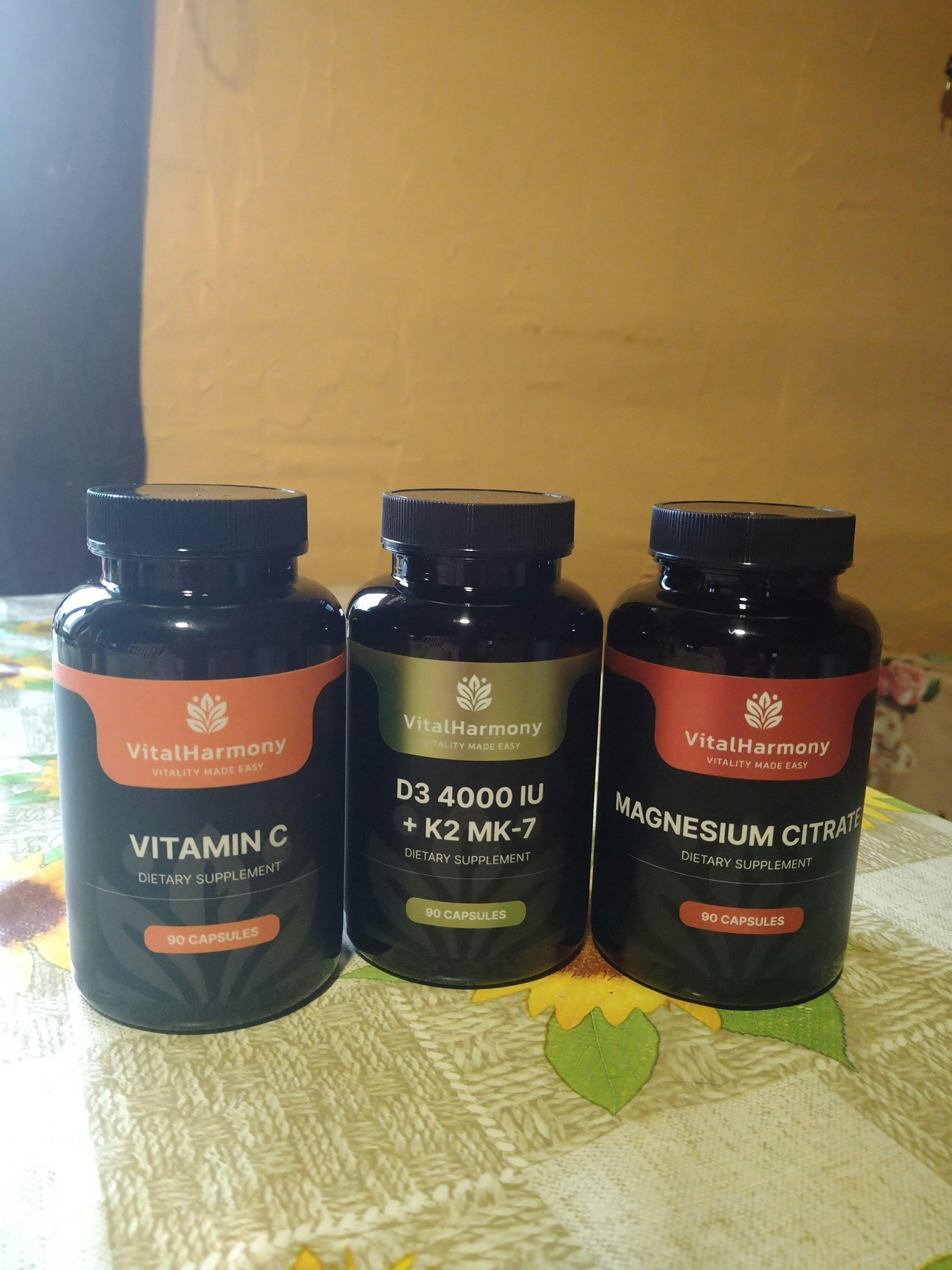 VitalHarmony D3 4000 IU + K2 MK-7 is a powerful daily supplement designed to support strong bones, a healthy cardiovascular system, and optimal immune function. This advanced formula combines high-dose Vitamin D3 (4000 IU) with Vitamin K2 MK-7 for superior bioavailability and synergistic action.
