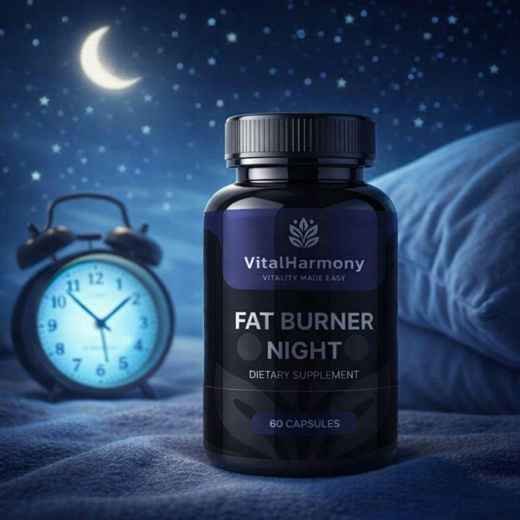VitalHarmony Fat Burner Night is a carefully formulated food supplement designed to support nighttime fat metabolism, relaxation, and restful sleep. This advanced complex combines amino acids, plant extracts, minerals, and melatonin to create a comprehensive supplement for evening use.
